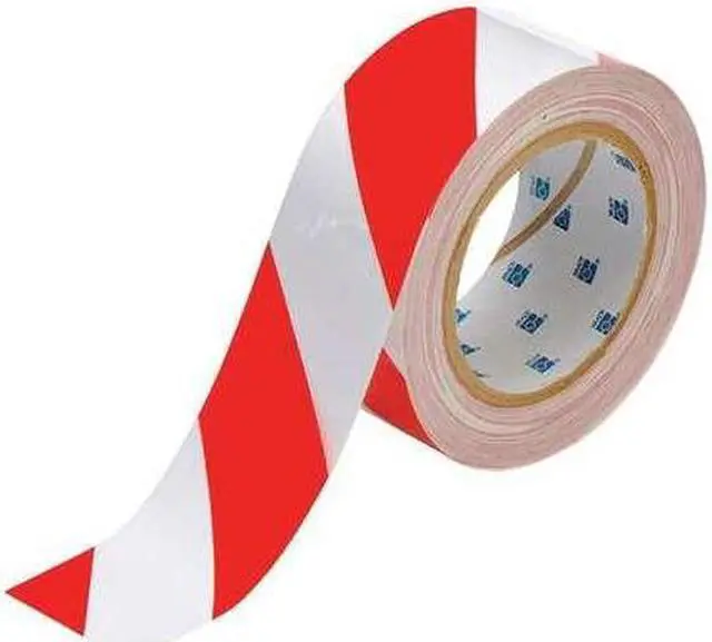 Floor Marking Tape, Pattern Striped, Red, White, Width 2 in, Roll Length 100 ft, Continuous Roll, Die Cut Shape Continuous Roll, Material Polyester, Thickness 0.008 in, Performance Temp. 0 Degrees to 130 Degrees F, Glow-in-the-Dark No. This item has been restricted from sale in the following state (s): []