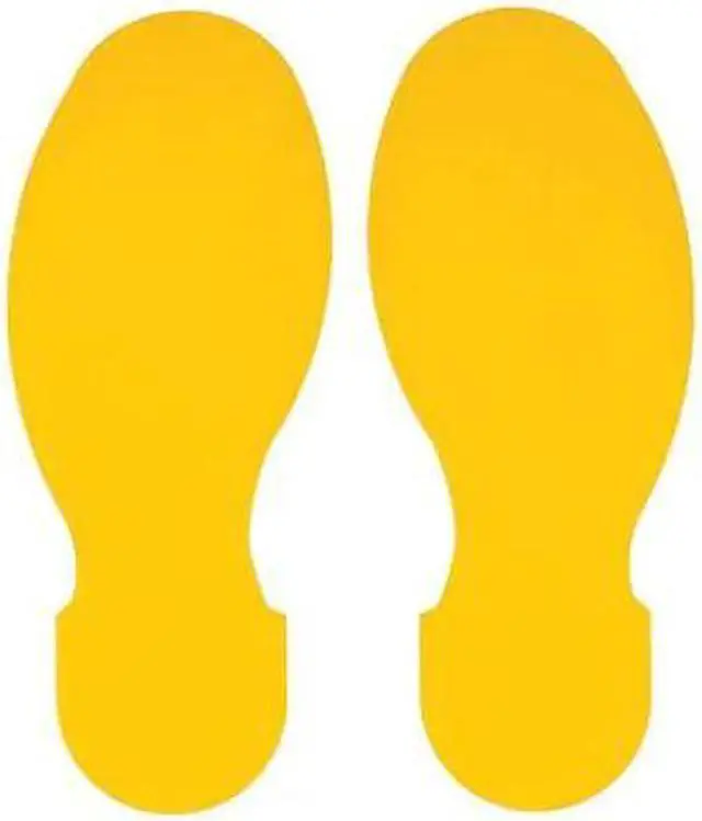 Floor Marking Tape, Pattern Solid, Yellow, Width 3 1/2 in, Tape Strip Length 10 in, Die Cut - Tag, Die Cut Shape Footprint, Material Polyester, Thickness 0.008 in, Performance Temp. 0 Degrees to 130 Degrees F, Glow-in-the-Dark No, Package Quantity 10. This item has been restricted from sale in the following state (s): []