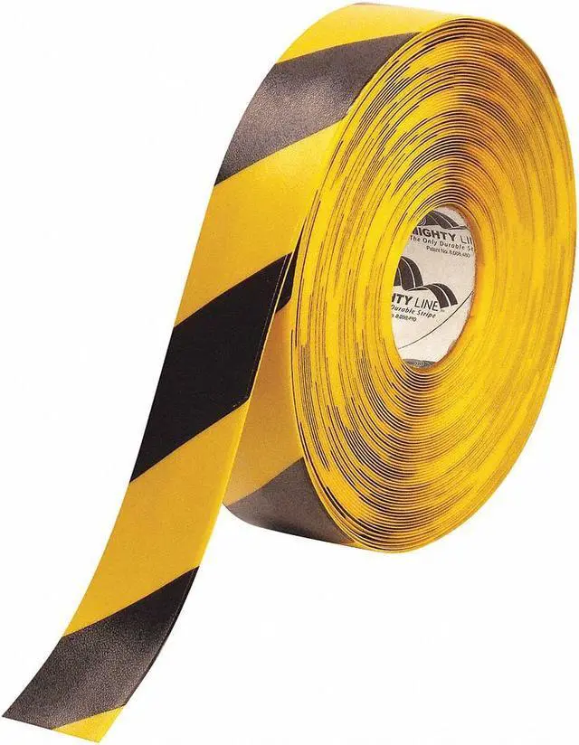 Floor Marking Tape, Continuous Roll, Striped, Black/Yellow, 2 in, 100 ft, 50 mil, Vinyl, Mighty Line (R), Legend No Legend, Glow In The Dark No, Retroreflective Grade Non-Reflective. This item has been restricted from sale in the following state (s): []