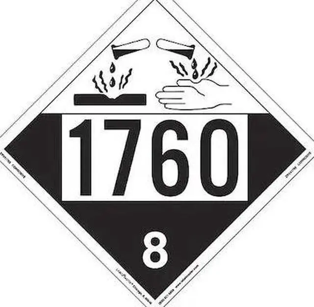 California Proposition 65: This product contains a chemical known to the State of California to cause birth defects or other reproductive harm. Corrosive Placard, UN 1760, Package Quantity 25, Package Quantity 25. This item has been restricted from sale in the following state (s): []