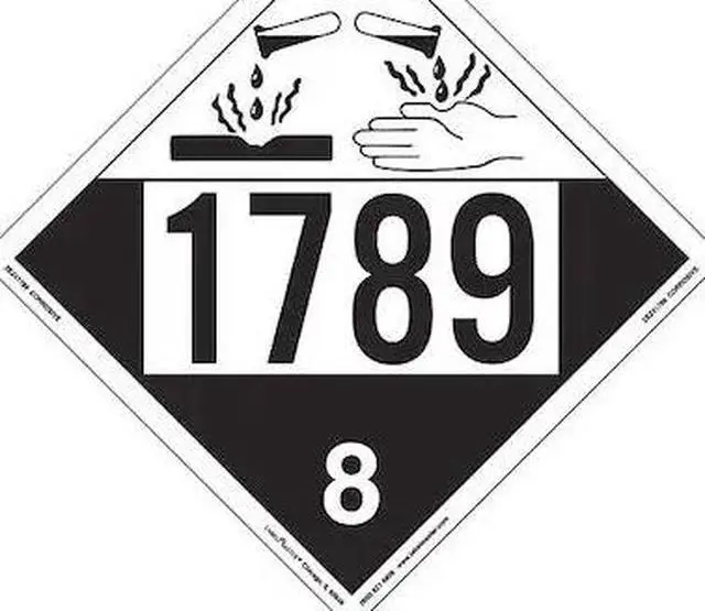 California Proposition 65: This product contains a chemical known to the State of California to cause birth defects or other reproductive harm. Corrosive Placard, UN1789, Package Quantity 25, Package Quantity 25. This item has been restricted from sale in the following state (s): []