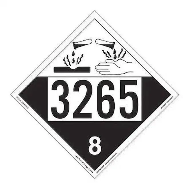 California Proposition 65: This product contains a chemical known to the State of California to cause birth defects or other reproductive harm. Corrosive Placard, UN 3265, Package Quantity 25, Package Quantity 25