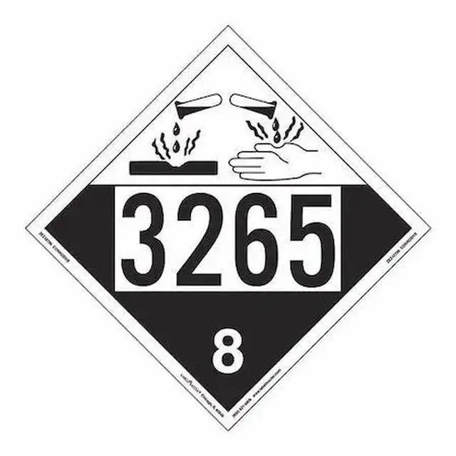California Proposition 65: This product contains a chemical known to the State of California to cause birth defects or other reproductive harm. Corrosive Placard, UN 3265, Package Quantity 25, Package Quantity 25