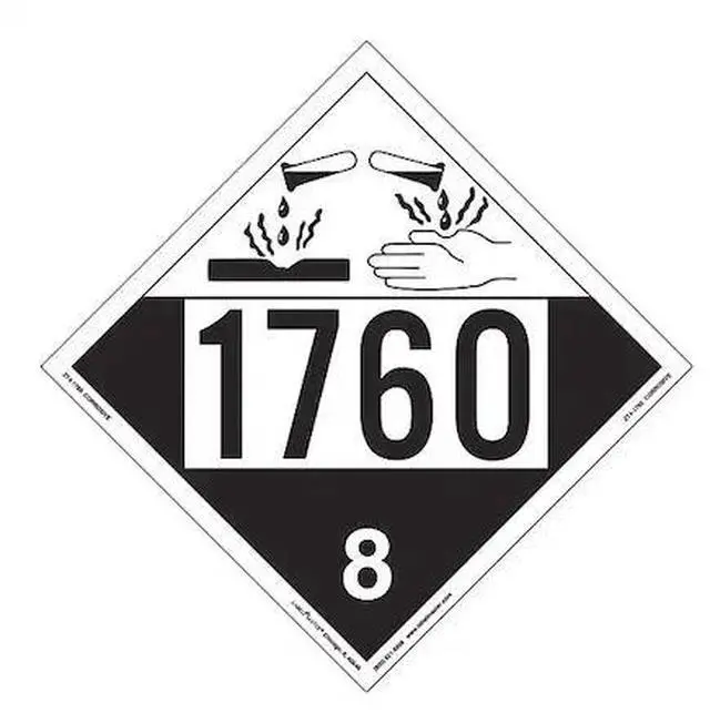 California Proposition 65: This product contains a chemical known to the State of California to cause birth defects or other reproductive harm. Corrosive Placard, UN 1760, Package Quantity 25, Package Quantity 25