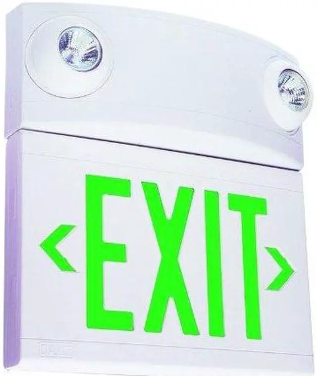 - Four long life LEDs illuminate the exit sign, and two, semi-recessed "eyeball" shaped lamp-heads with halogen or LED based MR16 lamps provide emergency unit illumination.