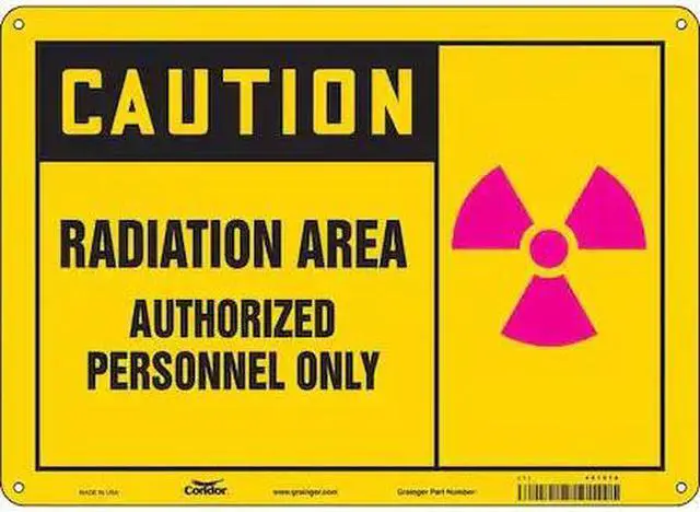 California Proposition 65: This product contains a chemical known to the State of California to cause birth defects or other reproductive harm. Radiation Safety Sign, Horizontal Rectangle, Number of Printed Sides 1, English, Sign Format Traditional OSHA, Sign Legend Radiation Area Authorized Personnel Only, Sign Legend Background Color Yellow, Sign Legend Style Symbol and Text