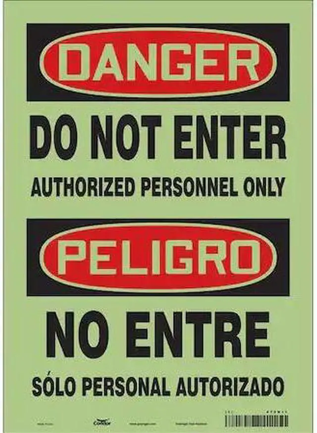 Safety Sign, Vertical Rectangle, Number of Printed Sides 1, English, Spanish, Sign Format Traditional OSHA, Sign Legend Do Not Enter Authorized Personnel Only/No Entre Solo Personal Autorizado, Sign Legend Background Color White, Sign Legend Style Text
