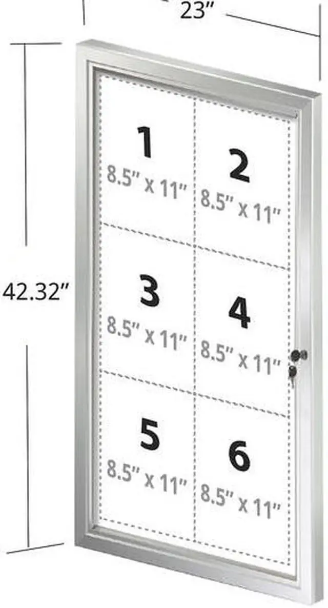 Azars Enclosed Magnetic Message Board with lock and key ensures that signage and items contained inside can only be accessed by those with the authority to do so. These magnetic message boards have a shatter resistant  polycarbonate locking door and a glossy white finish surface. They can be utilized as a write on whiteboard and are perfect for use with board markers or water-base chalk pens (not included). Write on messages can be erased just as easily as they are applied on this message board's dry-wipe surface. Easy to write and erase. These magnetic message boards are ideal for scholastic or business environments to display announcements, specials, memos, directions, rules, and messages.