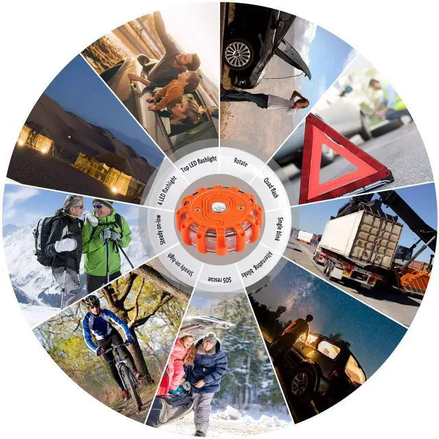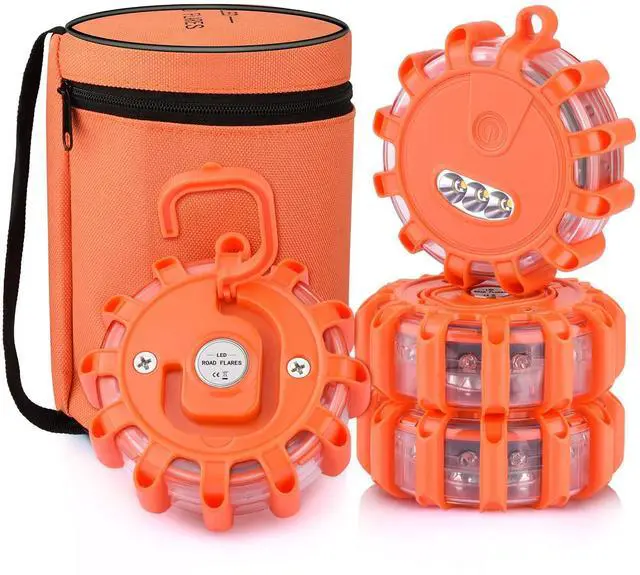 Waterproof IP67: The LED Road Flares with a waterproof seal that shield the batteries from the elements and guarantees the device remains functional when you need it most urgently. Never worry about rain or water.