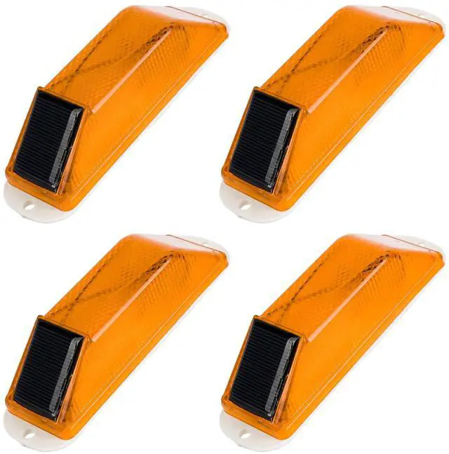 Solar Strobe Warning Light 4-Pack Traffic Light Super Bright LED Flashing Beacon, Solar Powered Light-Control Warning Lamps, IP54 Waterproof Barricade Flashing Lights for Construction Safety (Yellow)