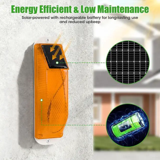 Energy Efficient & Low Maintenance: Solar-powered design with a built-in rechargeable battery eliminates wiring and reduces maintenance costsset it up and let it run automatically. Charge in direct sunlight for 68 hours before first use.