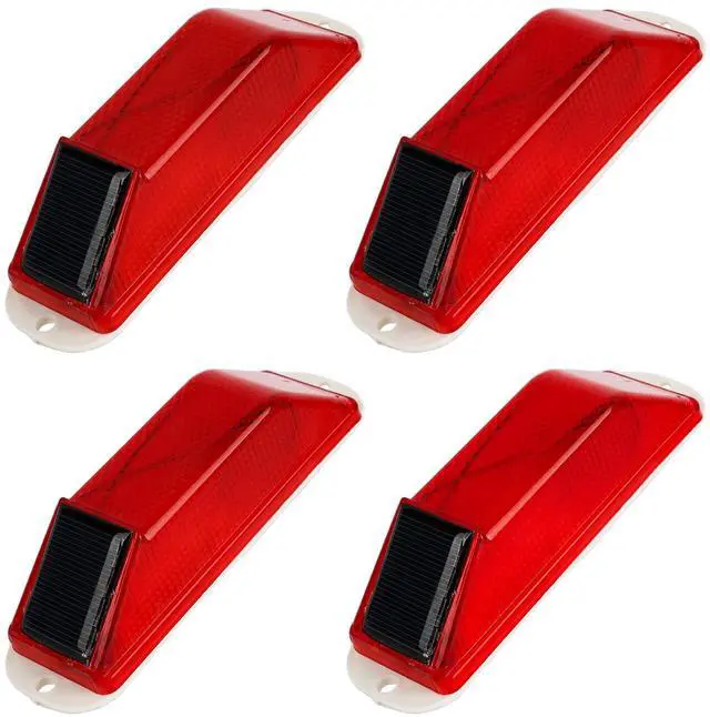 Solar Strobe Warning Light 4-Pack Traffic Light Super Bright LED Flashing Beacon, Solar Powered Light-Control Warning Lamps, IP54 Waterproof Barricade Flashing Lights for Construction Safety (Red)