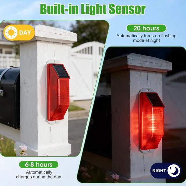 Solar Powered with Smart Light Sensor: Built-in light sensor automatically charges the light during the day (68 hours of sunlight) and turns on flashing mode at night, delivering up to 20 hours of continuous operation.