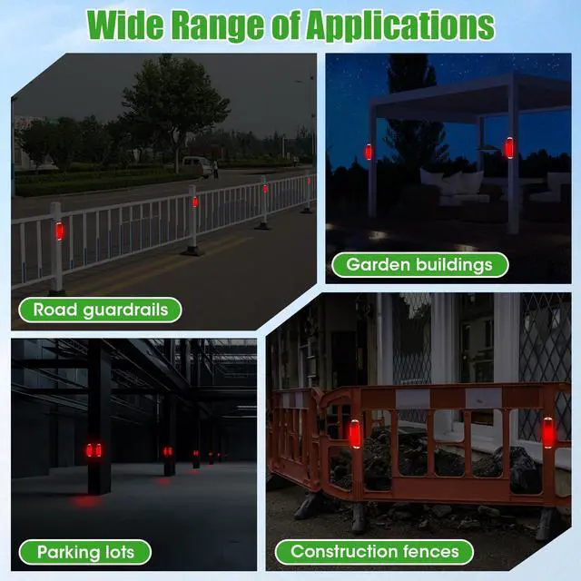 Two Easy Installation Methods: Securely install using the included screws, or quickly mount with strong double-sided tape for temporary or fast setups. The strobe lights is perfect for construction barriers, road guardrails, traffic cones, barricades, parking lots, pathways, driveways, and temporary traffic control areas.