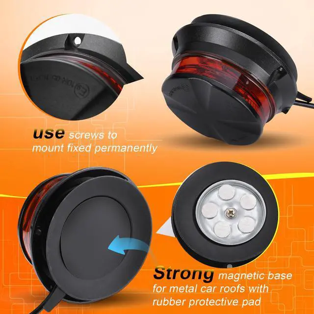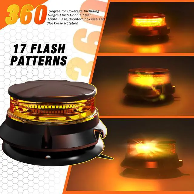 This amber magnetic strobe light for trucks with screw holes offers two mounting options for flexibility on specific vehicles and can be used for temporary or permanent installations.