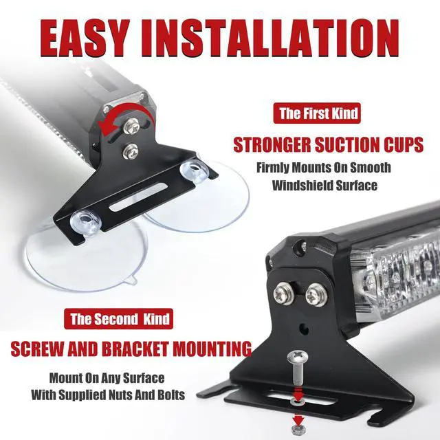 By combining a multifunctional mounting bracket with suction cups and nuts, the emergency strobe light can be fixed in any position on the vehicle