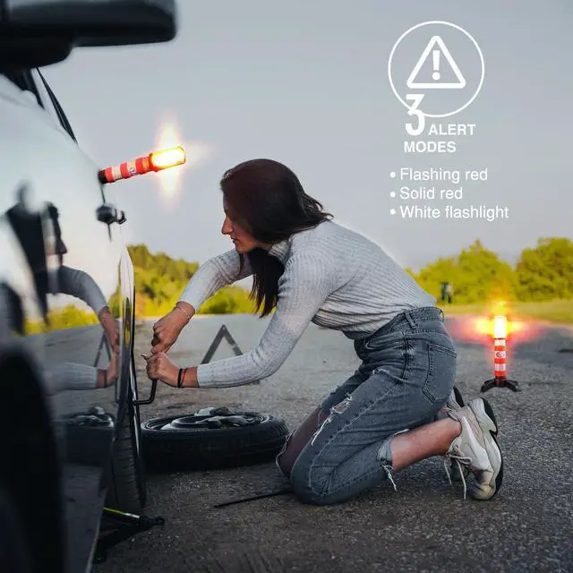 3 Separate Emergency Modes: These roadside flares for vehicles come with 3 separate lighting modes for your flares to function, including flashing red, solid red, and white flashlight.