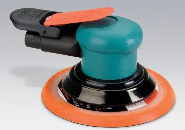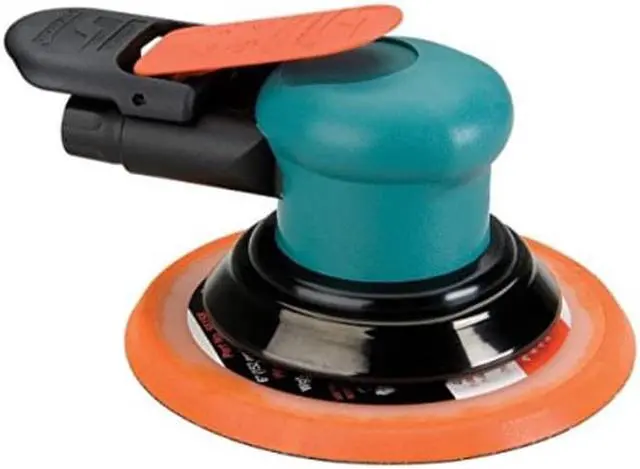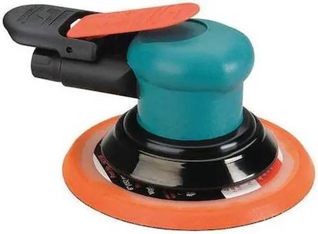 Air Random Orbital Sander, Pad Size 6 in, Vinyl or Hook Pad Face Type, Orbit Dia. 3/8 in, Vacuum/Non-Vacuum Non-Vacuum, HP - Air Tools 0.25 hp, Free Speed 12, 000 RPM, Variable Speed No, Body Style - Air Tools Palm, Lever Throttle, Industrial Duty, Spindle Size 5/16 In. -24, 3.5 cfm Average CFM @ 15 Second Run Time, 14 cfm CFM @ Full Load, Required Pressure 90 psi, Air Inlet 1/4 in NPT, Min. Hose Size 1/4 in, Overall Length 7 in, Rear Exhaust Type