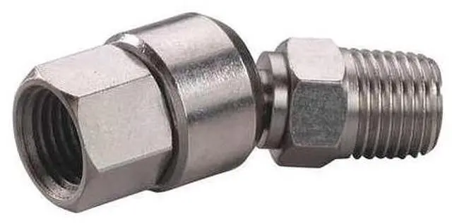 California Proposition 65: This product contains a chemical known to the State of California to cause birth defects or other reproductive harm. Swivel Connector, Pipe Size 1/4 in, Hose Connection (M) NPT x (F) NPT, Inlet 1/4 in NPT, Outlet 1/4 in NPT, Body Size 1/4 in, Material Steel, Finish Chrome Plated, Max. Pressure 150 psi, Temp. Range -20 Degrees to 150 Degrees F, Seals NBR. This item has been restricted from sale in the following state (s): []