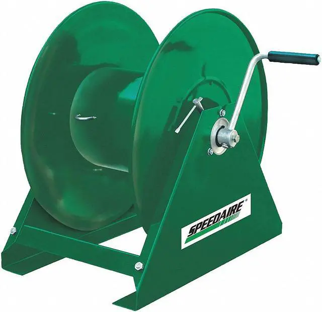 Hand Crank Hose Reel, Air, Water, Hose Capacity 200 ft (1/2 in ID), 3, 000 psi, Overall Height 19 7/16 in, Overall Length 20 3/16 in, Overall Width 16 15/16 in, Reel Material Steel, Reel Finish Powder Coated, Drive Type Hand Crank, Enclosed No, Includes Hose No, Mounting Location Floor, Reel Color Green, Includes Gooseneck No, Hose Reel Type Wall Mount Hose Reel, Swivel Material Brass, Swivel Outlet Gender Male, Swivel Outlet Thread Size 3/4 in - 14. This item has been restricted from sale in the following state (s): []