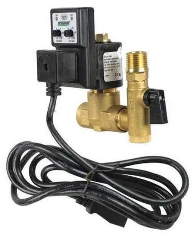 Timed Electric Auto Drain Valve, Pipe Size 1/2 in NPT, Drain Size 1/2 in, Drain Rate 17.5 gpm, Adjustable Drain Cycle 0.5 sec to 45 min, Purge Time 0.5 sec to 10 sec, Voltage 100-120V, Max. Pressure 300 psi, Operating Temp. Range 14 Degrees to 140 Degrees F, Hz 50/60, Amps AC 0.4 A, Enclosure IP65, Body Material Brass, Overall Height 5 in, Overall Width 4 1/4 in, Overall Depth 3 35/64 in, Includes 6 ft Power Cord, Filter Ball Valve.
