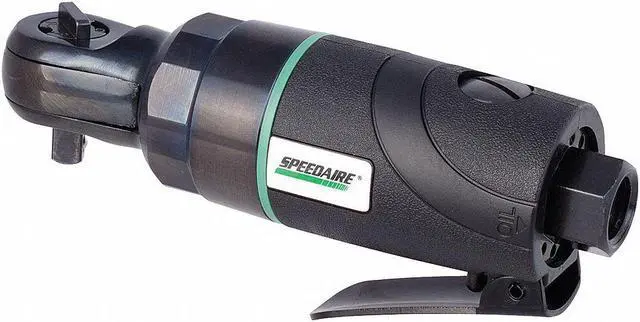 California Proposition 65: This product contains a chemical known to the State of California to cause birth defects or other reproductive harm. Ratchet, Air Powered, Air Consumption 16 cfm, Air Inlet 1/4 in NPT Female, Air Pressure 90 psi, Max. Air Pressure 90 psi, Min. Air Pressure 50 psi, Min. Hose Size 3/8 in, Exhaust Location Rear, Drive Size 1/4 in Square, Retainer Type Ball Detent, Free Speed 350 RPM, Fastening Torque 30 ft-lb, Duty Rating General Duty, Tool Brand SPEEDAIRE, Overall Length 5 1/4 in, Side to Center 9/16 in, Tool Weight 0.9 lb. This item has been restricted from sale in the following state (s): []