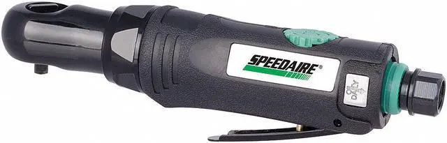 California Proposition 65: This product contains a chemical known to the State of California to cause birth defects or other reproductive harm. Ratchet, Air Powered, Air Consumption 16 cfm, Air Inlet 1/4 in NPT Female, Air Pressure 90 psi, Max. Air Pressure 90 psi, Min. Air Pressure 50 psi, Min. Hose Size 3/8 in, Exhaust Location Rear, Drive Size 1/4 in Square, Retainer Type Ball Detent, Free Speed 200 RPM, Fastening Torque 30 ft-lb, Duty Rating Industrial Duty, Tool Brand SPEEDAIRE, Overall Length 7 3/4 in, Side to Center 3/4 in, Tool Weight 1.1 lb. This item has been restricted from sale in the following state (s): []