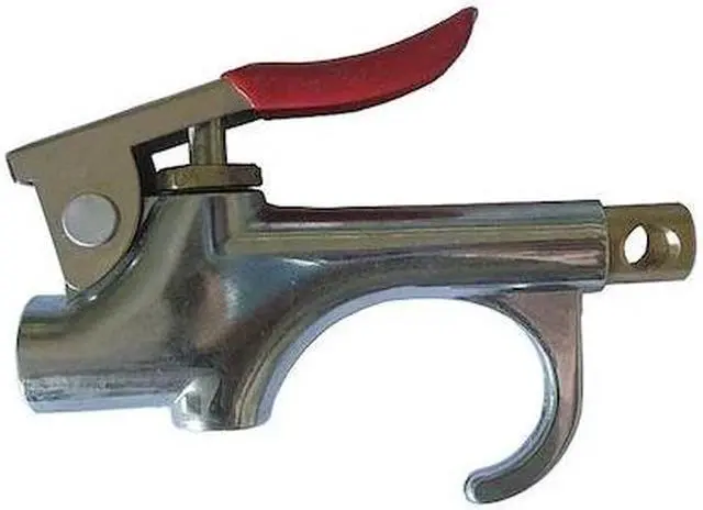 California Proposition 65: This product contains a chemical known to the State of California to cause birth defects or other reproductive harm. Air Gun, Thumb-Lever, Number of Nozzles Included 1, Nozzle Length 3/4 in, Nozzle Tip Material Brass, Nozzle Angle Straight, Nozzle Features Non-Marring, Nozzle Safety, Air Flow Pattern Focused, Sound Level 102 dB, OSHA Pressure Compliant Yes, Output Thrust 0.7 lbf, Body Material Chrome Plated Zinc, Air Inlet Size 1/4 in, Air Inlet Gender Female, Air Inlet Type NPT. This item has been restricted from sale in the following state (s): []