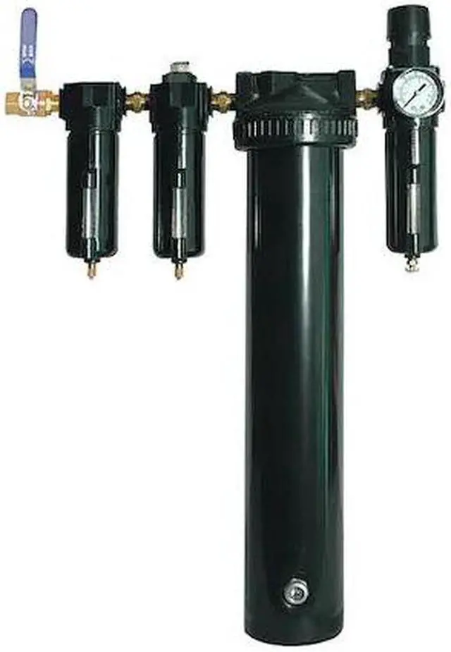 Desiccant Air Dryer, ISO Class 2, Air Inlet Size 1/2 in, Air Inlet Type NPT, Maximum Flow Rate 30 cfm, Overall Length 15 1/2 in, Overall Width 18 1/4 in, Maximum Operating Pressure 250 psi, Dew Point -40 Degrees F, Filter Rating 0.01 micron, 3 micron, 5 micron, 40 micron, Filter Included Yes, Number of Stages 5, Air Outlet Size 1/2 in, Air Outlet Type NPT, Application Dry Air, Body Material Metal, Bowl Capacity 9 oz, 128 oz, Bowl Material Metal, Desiccant Material Silica Gel, Drain Included Yes.