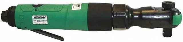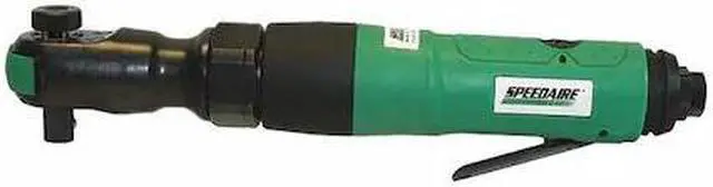 Ratchet, Air Powered, Air Consumption 2 cfm, Air Inlet 1/4 in NPT, Air Pressure 90 psi, Max. Air Pressure 90 psi, Min. Air Pressure 70 psi, Min. Hose Size 3/8 in, Exhaust Location Rear, Drive Size 3/8 in Square, Retainer Type Ball Detent, Free Speed 600 RPM, Fastening Torque 100 ft-lb, Duty Rating Industrial Duty, Tool Brand SPEEDAIRE, Overall Length 11 1/2 in, Side to Center 11/16 in, Tool Weight 3.3 lb. This item has been restricted from sale in the following state (s): []