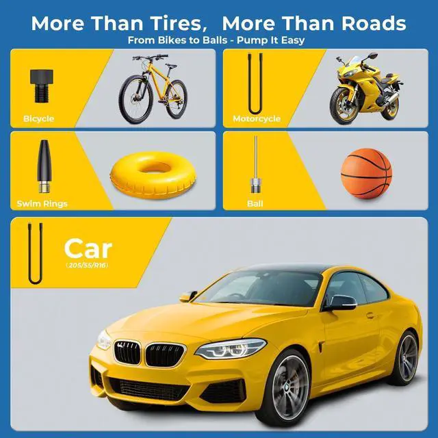Yes! With multiple included nozzles, it’s ideal for bikes, motorcycles, balls. One device, many uses.