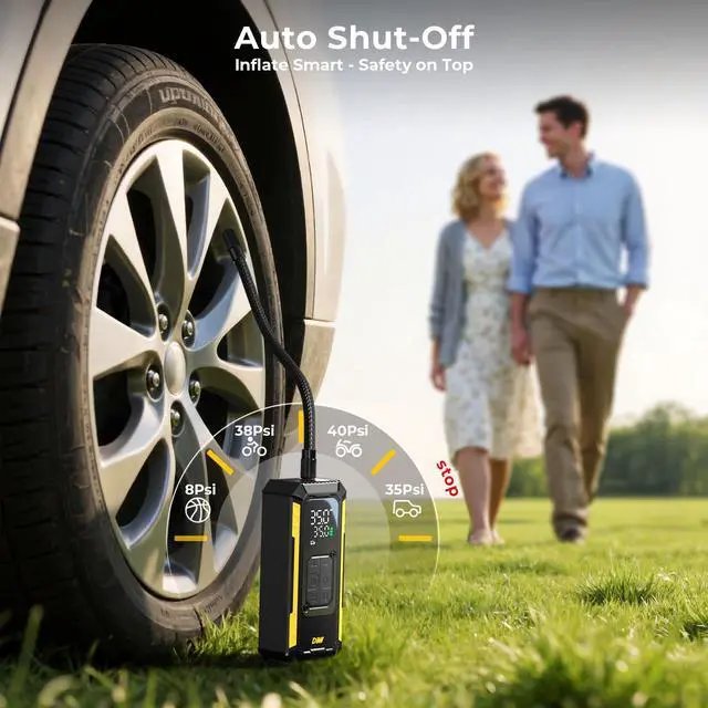 No worries—thanks to its auto shut-off feature, it stops automatically once the preset pressure is reached. You’ll never risk overinflation or wasted battery.