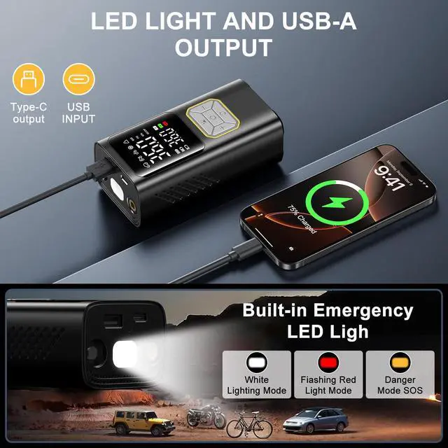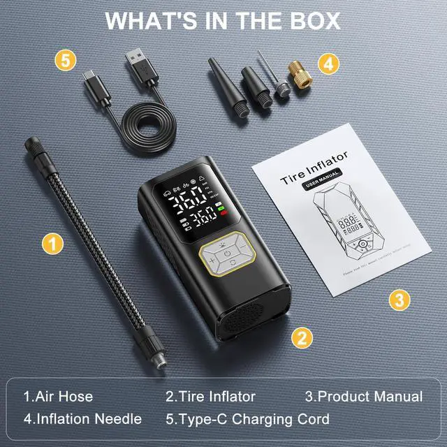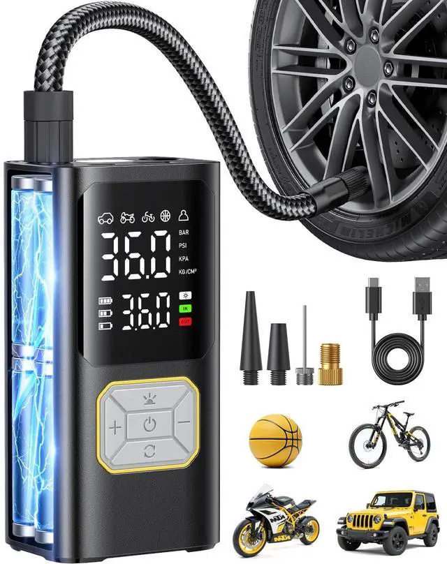 - [Usage Recommendations] Not suitable for heavy-duty tires. Store the air compressor in a cool, dry place, away from direct sunlight. For long-term storage, charge it every 3 months to prolong battery life.