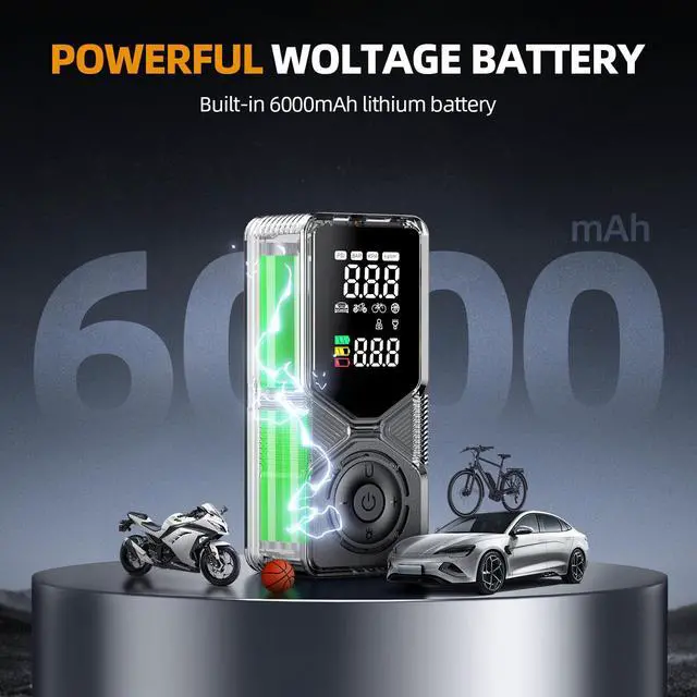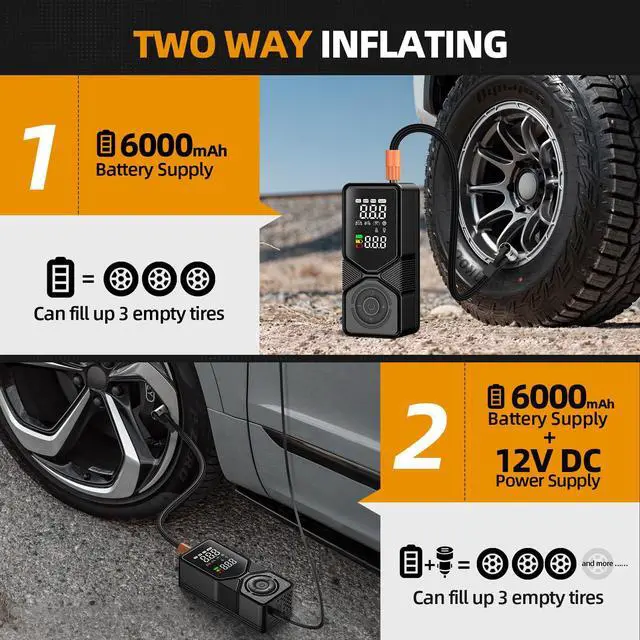 Never Run Out of Power: Massive 6000mAh built-in battery provides true cordless freedom. Battery low? Simply plug the included 12V DC cord into your car's lighter socket for unlimited continuous power.