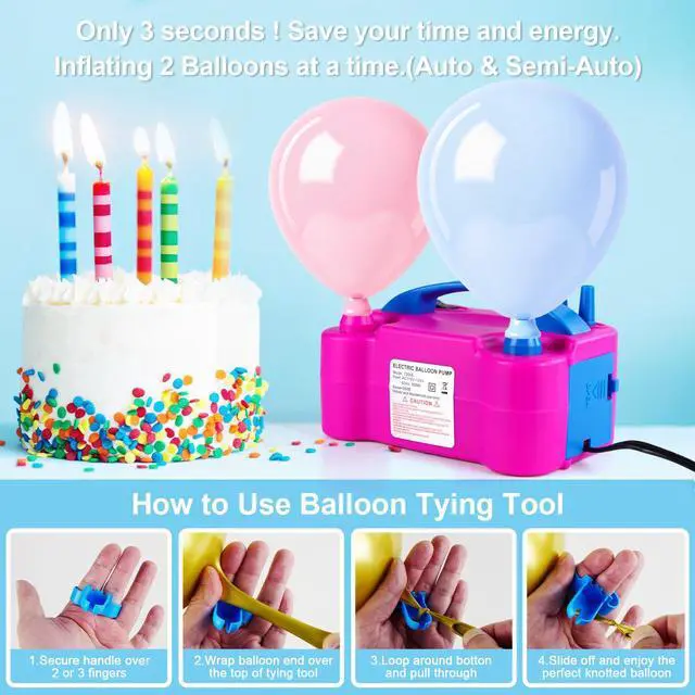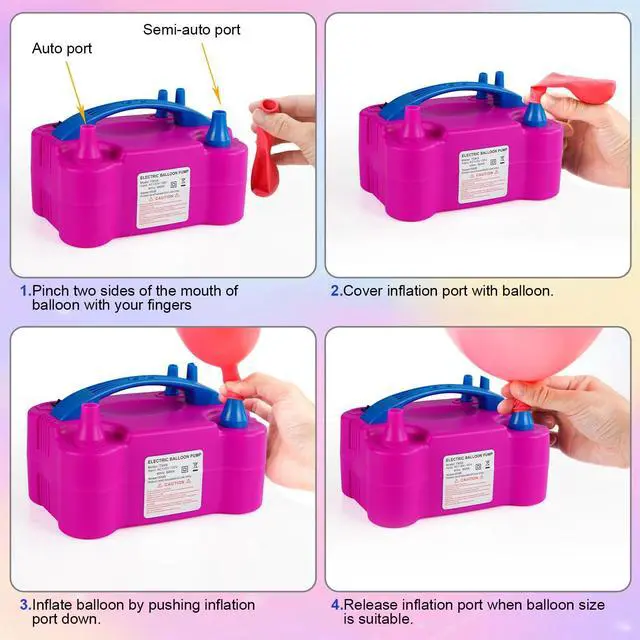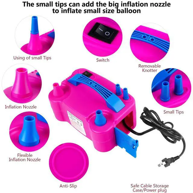 Multifunction: Multiple size hole for multiple size balloons. It contains 2 small size nozzles,which allow you to blow up the small balloons. Also includes 2 tying tools, makes you easier to tie balloons.