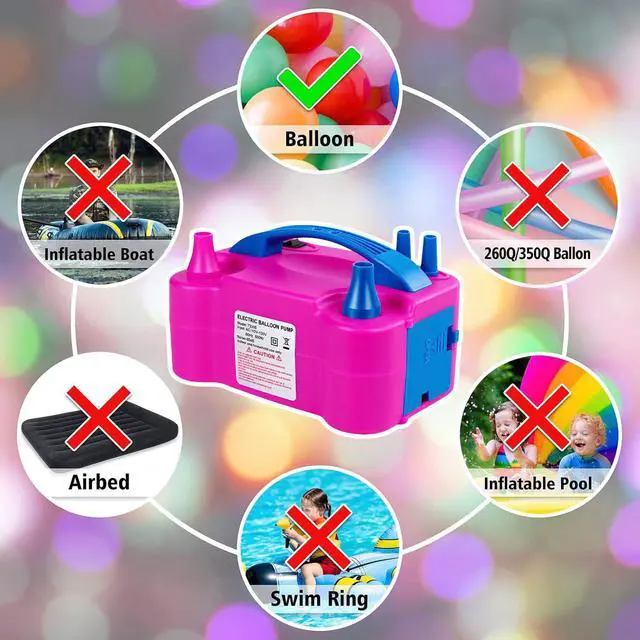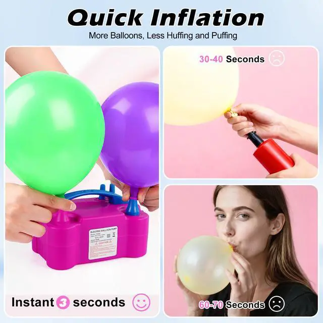 Fast and Efficient: Two operation modes: continuous or touch-on. Smart double pump design - Push down mode and automatic continuous mode.It will inflate a balloon in seconds,which is fast, convenient to prevent your balloons bursting.