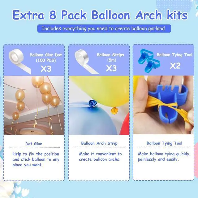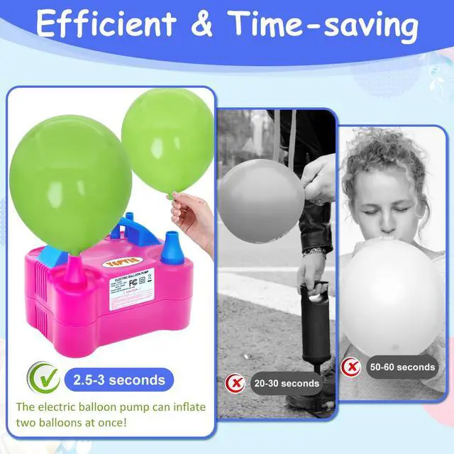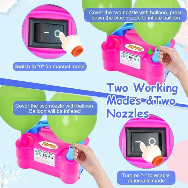 | Package List | 1*Electric Balloon Pump; 2*Small Balloon Nozzles; 2 Tying Tools, 3*5m Tape Strip, 3 *100 pcs Dot Glues; 1*User Manual |