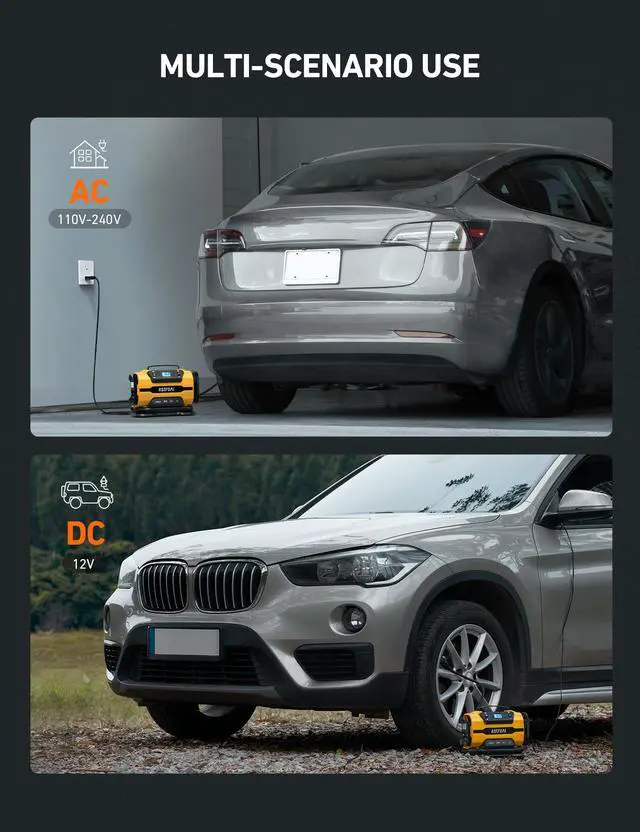 | Two motors work independently | Portable;Digital; Auto Shutoff | Portable;Digital; Auto Shutoff | Auto Shutoff; LCD screen | 470W Motor; Cordless Inflation | Dual Metal Cylinders & Motors | Metal Cylinder; Portable |
