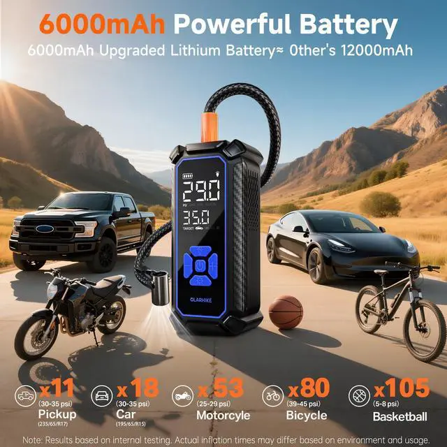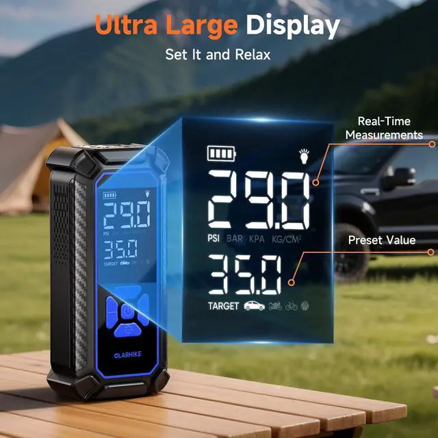 To enhance your enjoyment of life and travel, OlarHike introduces its innovative tire inflator. Combining a portable design with rapid inflation and a high-voltage battery, this compact device is both powerful and convenient. It also doubles as a reliable outdoor light whenever needed.