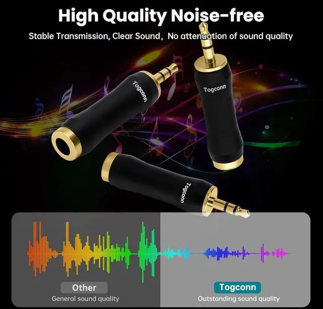 Wide Compatibility: Togconn 3.5 mm TRS Stereo male to 6.35 mm female adapter ideal for most professional audio and home audio devices. Compatible with home theater equipment Guitar cameras headphones Instruments amplifiers speakers mp3 players and more.