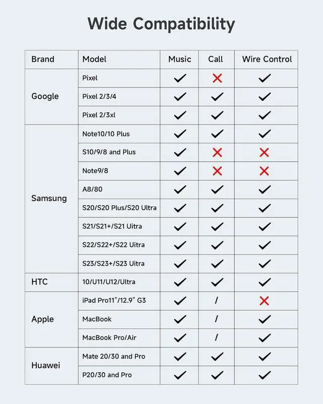 Note: QC charging is not supported on some newer phones; a PD wall charger is recommendedWide Compatibility This usb c to aux and charger adapter compatible with most of the type c device: For iPhone 17 / Air / 17 Pro / 17 Pro Max / 16 / 16 Plus / 16 Pro Max / 15 / 15 Pro / 15 Pro Max S25 / S24 / S23 / S22 / S21 / S20 / S20+ / S20 Ultra / S20 Z Flip / S10 / S10+ / Note10 Google Pixel 6 / 6 XL / 5 / 5 XL / 4 / 4 XL / 3 / 3 XL / 2 / 2 XL i-Pad pro Sony XZ3 P40 / P30 Pro / P20 /Mate 60 / 60 Pro / 50 / 50 Pro / 40 Pro / 30 Pro / Mate Rs Mix 2 / 2s and more.