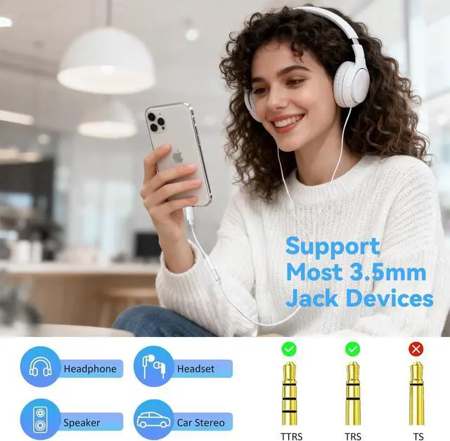 (Please note: This adapter does not support call and language control functions. ) High Quality The adapter is made of highly wear-resistant ABS and TPE materials with advanced design and high-quality metal adapters that make the product more durable. It can be bent multiple times without worrying about damage or interference with sound quality. Simply plug this iPhone 3.5 mm headphone adapter into your iPhone and you can easily use it for travel gym office and other daily activities. Small And PortableThis lightweight headphone adapter is easy to carry fitting effortlessly into your wallet backpack briefcase or pocket. It can also be neatly wrapped along with your headphone cable allowing you to connect instantly and enjoy your music anytime anywhere.