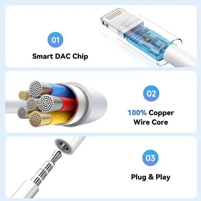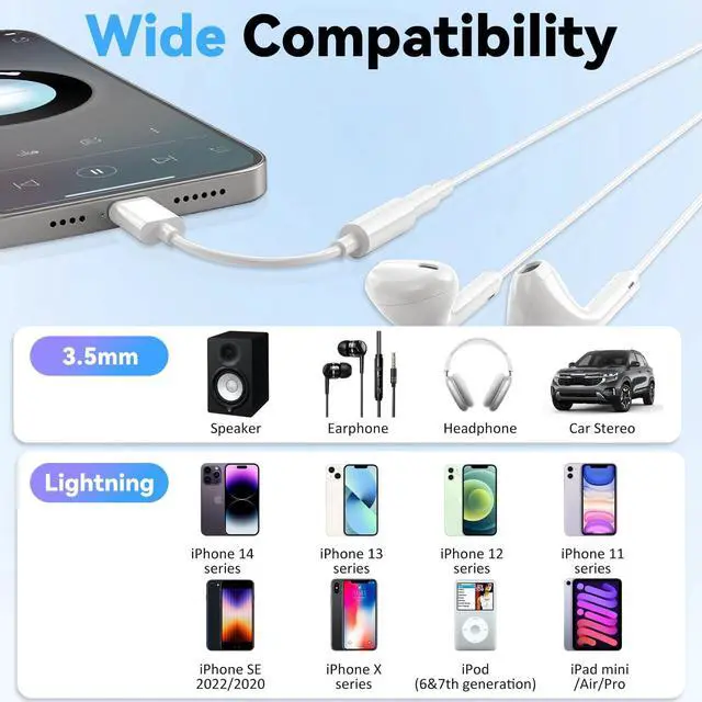 Extensive CompatibilityThis iPhone headphone adapter supports all 3.5 mm headphones speakers and other cables. Applicable to iPhone 14/14Plus/14Pro/14ProMax/13/13Pro/13ProMax/13Mini/12/12Pro/12ProMax/12Mini/11/11Pro/11ProMax/XS/XSMax/XR/X/8/8Plus/7/7Plus/6s/6sPlus/6/6Plus/5/iPad and all iOS systems. Hi-Fi Sound QualityOur iPhone audio adapter adopts advanced noise reduction technology supporting lossless audio output of up to 48KHz/24bit which can experience soaring highs rich mids and powerful bass. When you use a converter to connect your device to headphones you can enjoy high-quality raw music without interference or damage. Efficient TransmissionFeatures a 100% pure copper core that ensures fast and stable signal transmission. You will receive 2 pack of iPhone headphone adapters plug and play no setup required.