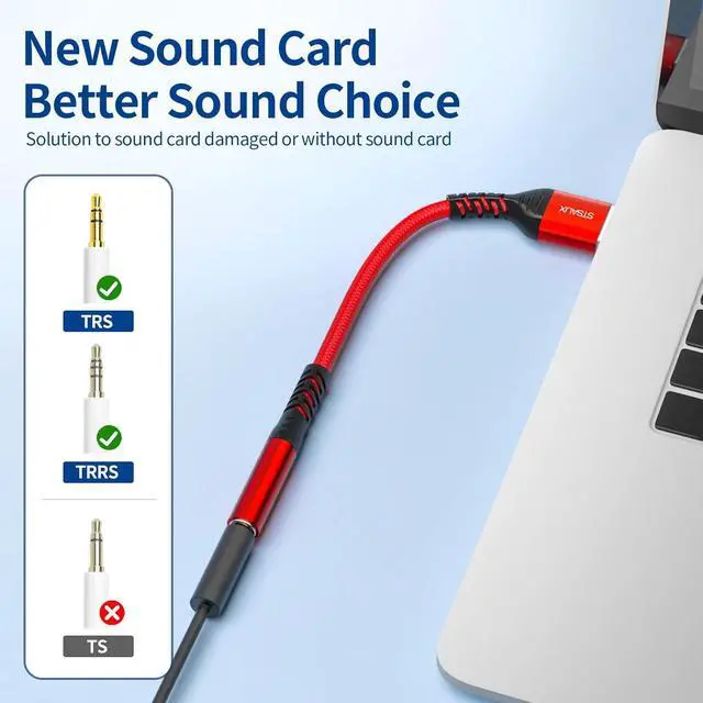STSAUX USB to 3.5 mm Audio Adapter with Advanced DAC Chip - Experience crystal clear stereo sound and microphone functionality through an external USB sound card. Equipped with a high-performance DAC smart chip it delivers 24-bit/96KHz high-resolution audio output with enhanced noise reduction providing immersive experiences for gaming music and communication. Serves as an ideal replacement for damaged audio ports on laptops and desktop computers. Plug and Play Instant Setup - No drivers or software required! The STSAUX USB-A to 3.5 mm TRRS adapter automatically recognizes devices within seconds. Fully compatible with Windows 10/11 Mac OS Linux Chrome OS and Surface Pro.