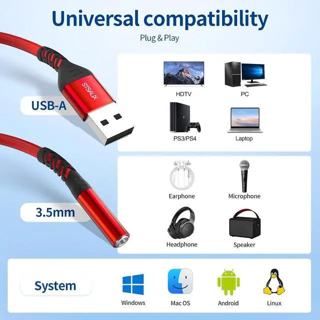 Important note: Not compatible with TVs cars or iOS microphone functionality (audio output only). Full Compatibility with TRRS CTIA Standards - Connect any 3.5 mm headphones microphones or speakers to USB-enabled devices. Supports CTIA/OMTP standards and works with Android headsets gaming headphones and PC speakers. Explicitly incompatible with due to USB audio output limitations. Dual-function Microphone + Audio Support - Unlike basic audio-only adapters STSAUX design enables simultaneous listening and speaking through a single TRRS 4-pole interface. Essential for Discord Zoom in-game voice chat. 18-month Warranty + Lifetime Technical Support - Each package includes 2 adapters backed by an 18-month warranty. STSAUX provides 24/7 customer service and troubleshooting. Ideal as backup solutions for home office setups gaming stations or tech toolkits.