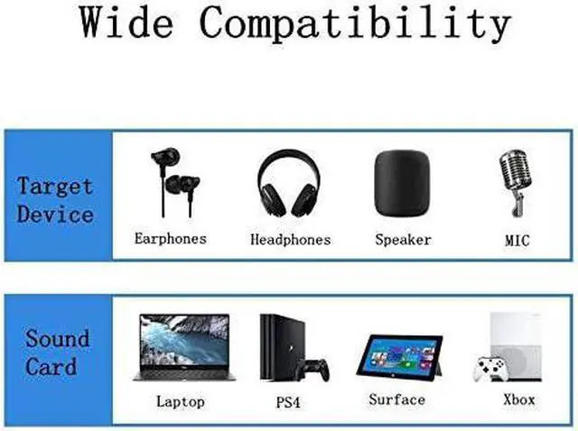 External Stereo Sound Adapter Connect a 3.5 mm TRRS aux port to your devices USB simply or use it as a replacement for a broken sound card Support sound listening and speaking both. Compatible with all USB enabled devices including Laptop PC Desktop PS4 Xbox Macbook and more Support Systems such as Windows 10/ 8.1 /8/7/Vista/XP Mac OS X Linux Google Chromebook etc. Fashion nylon knitting wire cover with high strength and tensile resistance. High quality core stereo sound transmission well with out current noise. Just plug and play without any other external drivers. USB to 3.5 mm port will be recognized by system automatically and immediately.