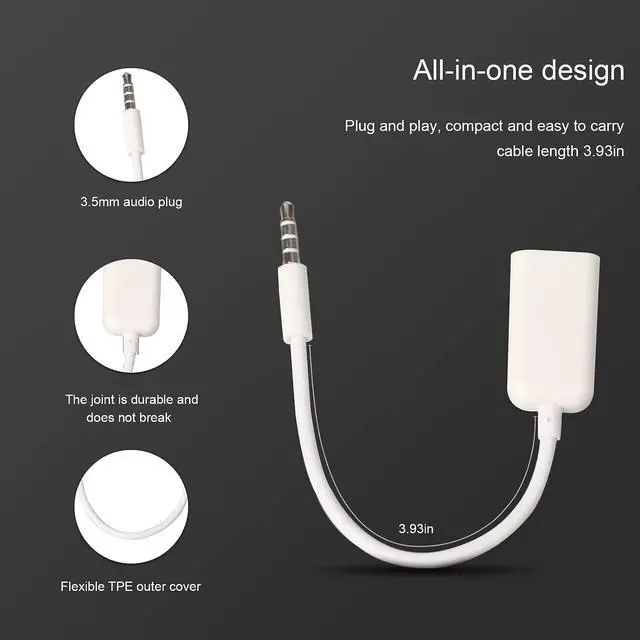 ONLY FOR CAR AUX-IN WITH MP3 DECODER ( 3.5MM JACK ONLY)-- This AUX to USB adapter only works with car audio systems that have a 3.5 mm AUX-IN port and built-in MP3 decoding function. It lets you play MP3 music files from a USB flash drive through your car stereo. NOT COMPATIBLE WITH HEADSET SPEAKERS PHONE COMPUTERS CAMERA MICROPHONE MONITOR-- This cable is not suitable for headphones speakers laptops phones game consoles or MP3 players. It does not transmit audio or data in those devices. USB DRIVE REQUIREMENTS ONLY USB 2.0 & MP3 FORMAT-- Only supports USB 2.0 flash drives (not USB 3.0 or other versions) with maximum capacity under 8GB and MP3 music files only.