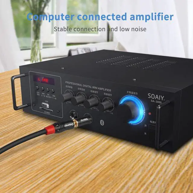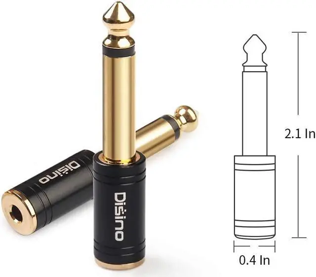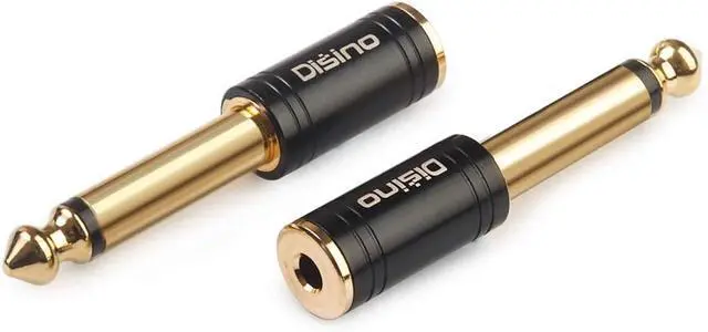 DISINO mono to stereo adapter is designed to split a mono signal from a 1/4 output into both channels (left and rught channel) of a 3.5 mm input It could be used to connect a mixing console guitar amp bass piano mono radio with a 6.35 mm stereo jack to a portable media player cell phone laptop recording device or similar device with standard 3.5 mm plugs. This only used as a mono (output) to stereo (input) connect if it used as a stereo (output) to mono (input) this may burnout the stereo output stage of the device.