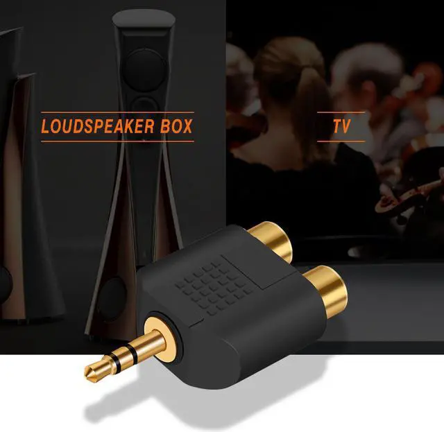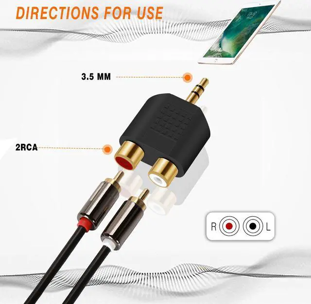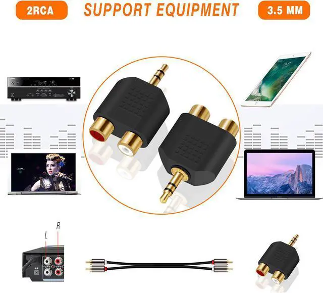 3.5 mm Stereo to Dual RCA adapters connect smartphones MP3 players or headphones with stereo jack to speakers or AV receivers with RCA port. Connect a RCA Stereo Audio cable to a 3.5 mm port Grip treads help easy plugging and unplugging. Carries a Stereo Audio signal Gold-plating resists corrosion and ensures minimal signal loss. Connect your audio sources to your sound system The 3.5 mm Male to Dual RCA Female Audio Cable is ideal for when you want to connect a portable device to your home stereo. Easy install with color coded ends plug and play.
