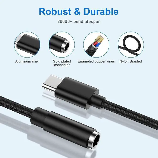 The galaxy a17 a16 5g a56 a36 a26 a54 s25 edge s25 ultra s25 plus s24 fe s23 usb c to 3.5 mm aux cord headphone jack adapter adopts super noise reduction technology to offer high quality audio output. The highs and lows are noticeable. You can feel the musics leaps and bounds better.?? Relief Strain & Durable DesignMade of premium aluminum alloy shell connector and Nylon-braided cable the iphone 17 pro max 17 air aux cord for car usb c aux adapter aux to android cord iphone 16 aux adapter connector for iphone 16 plus 16 pro max 16e usb c to 3.5 mm audio aux headphone jack adapter can stand twists pulls and daily bends up to 20000+ bending tests.